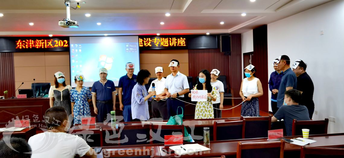 7月10日上午,东津新区举办“2021 年推进生态文明建设专题讲座”,邀请我会孙德声、运建立前往宣讲。运建立以“推进生态文明, 践行科学发展,美丽中国,我是行动者”为题授课,东津新区党工委委员、管委会副主任张超主持,镇、办、场和区属各单位、区属相关企业主要负责人参加。 运建立结合 22 年环保事业的经验成果和深刻认识,从环境污染、气候变化、生物多样性减少、推进生态文明,践行科学发展等多方面,深入浅出地阐释了习近平生态文明思想的理论意义和现实意义。 讲座上,运建立通过趣味游戏、有奖问答、歌谣朗诵、庄严宣誓等丰富有趣的形式充分调动了在场所有人的参与积极性,让爱护地球,保护生物多样性等环保理念深入人心, 令人受益匪浅。