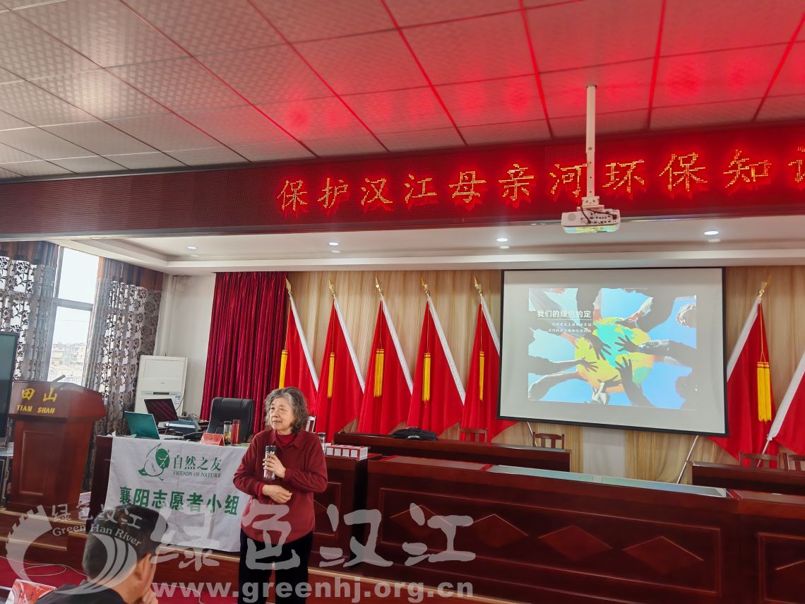 4月3日,自然之友襄阳志愿者小组运建立,应太平店镇政府邀请,带领张文学、邓伟一行,在该镇田山村委会四楼会议室,为该镇46个村委会书记,镇8个学校领导,分管环保人员等100余人开展环保宣传,提高乡镇人员环保意识,推进乡镇环保事业不断提升,为后续环境保护工作在乡镇全面开展奠定基础。
