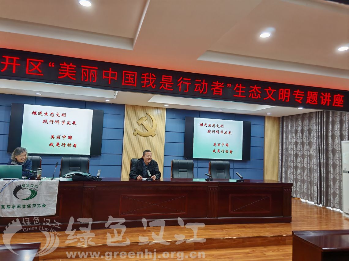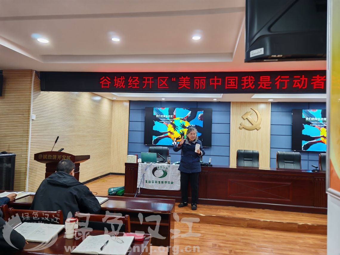 10月16日下午,应谷城县经济开发区邀请,我会运建立、邓伟,到达经开区八楼会议室,为经开区干部开展生态文明专题讲座。谷城县经开区全部干部员工,谷城河湖长制办公室等80余人参加本次活动。会议开始,经开区应急办公室主任张金涛介绍运建立在环境保护的先进事迹,希望大家努力学习,认真领悟。运建立以“美丽中国 我是行动者”为主题,为大家带来了生动形象的环保课程。通过气候变化,生物多样性减少,环境污染三大主题,全面剖析世界及国家范围内对待环境问题的政策,措施。同时以现实案例,结合当地实际,为大家介绍谷城环境保护发展现状,为谷城的发展转型提出建设性意见。期间,运建立带领大家集体朗诵环保顺口溜,开展有奖问答,加深课堂知识的理解与巩固。最后,在运建立带领下,大家集体环保宣誓,为本次活动画上了圆满的句号。