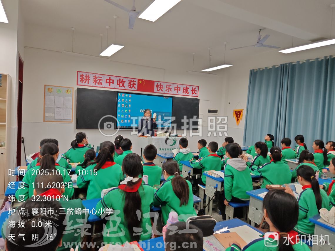 10月17日上午,我会运建立、邓伟到达谷城县三岔路中心小学, 为该校五年级一班学生带来一场精彩生动的环保知识讲座。该校五年级师生及经济开发区应急办公室张主任等60余人参加本次活动。运建立通过现场讲解环保知识,宣传环境污染,气候变化,生物多样性减少等内容,将孩子们带入到环保知识的海洋中,让他们真切体会到环境保护的重要性。通过环保游戏——“地球我们的家园”、现场环保顺口溜朗读、有奖问答等环节,让孩子们寓教于乐,深刻理解环保知识,初步掌握环保措施,知道自己如何从小做起,做好环保小卫士。最后运建立带领大家集体环保宣誓,增强大家积极参与环保的热情与动力。